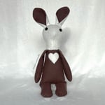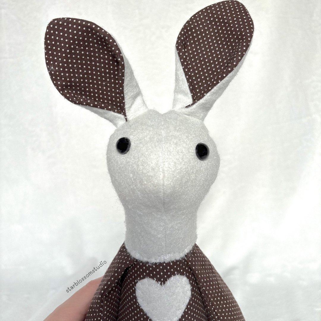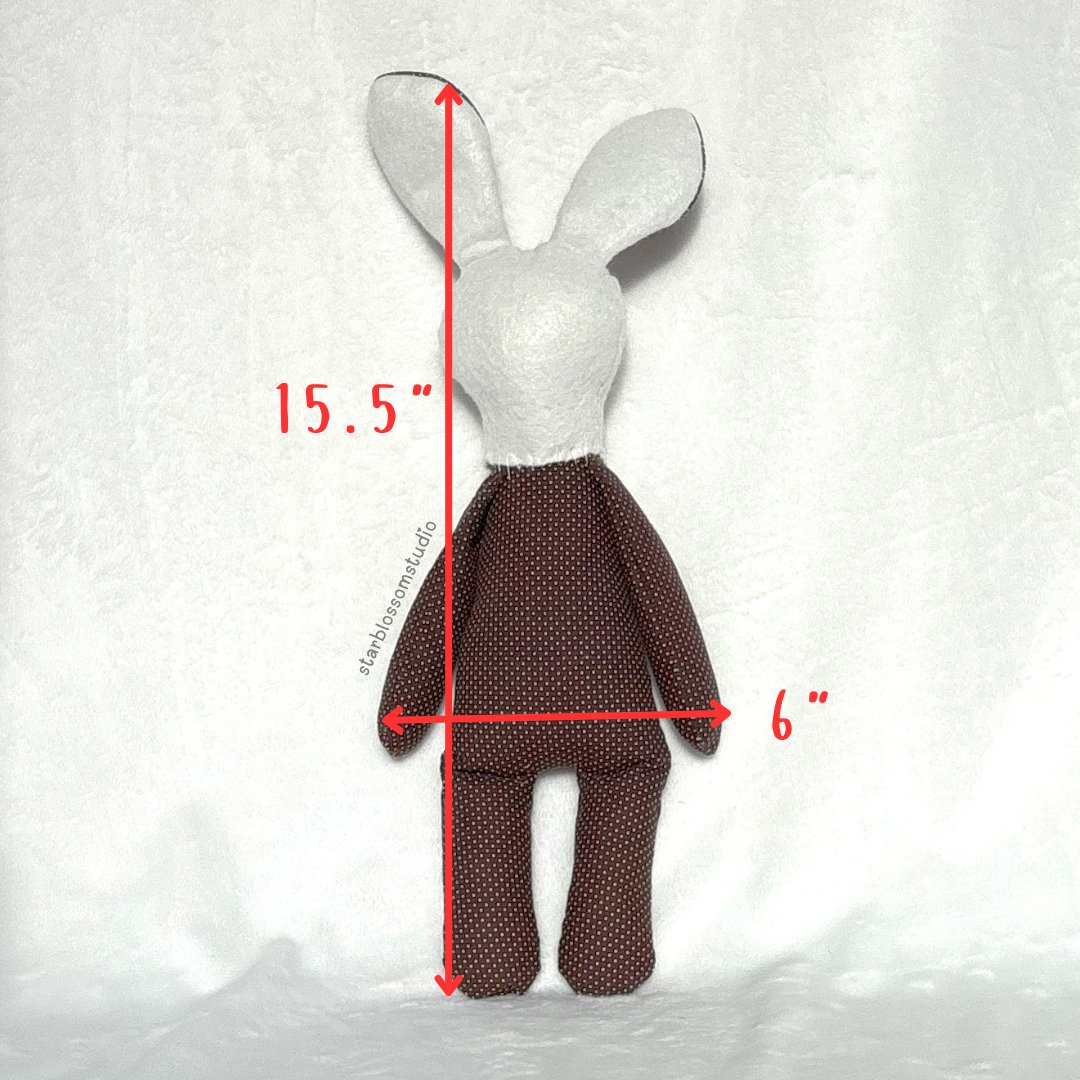 Betsy is a handcrafted rabbit plush. She is safe for all ages, as her eyes are safety eyes secured properly. Adult supervision is recommended when young children are playing with Betsy.
