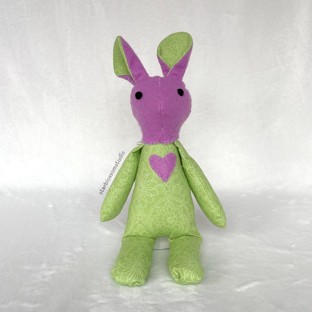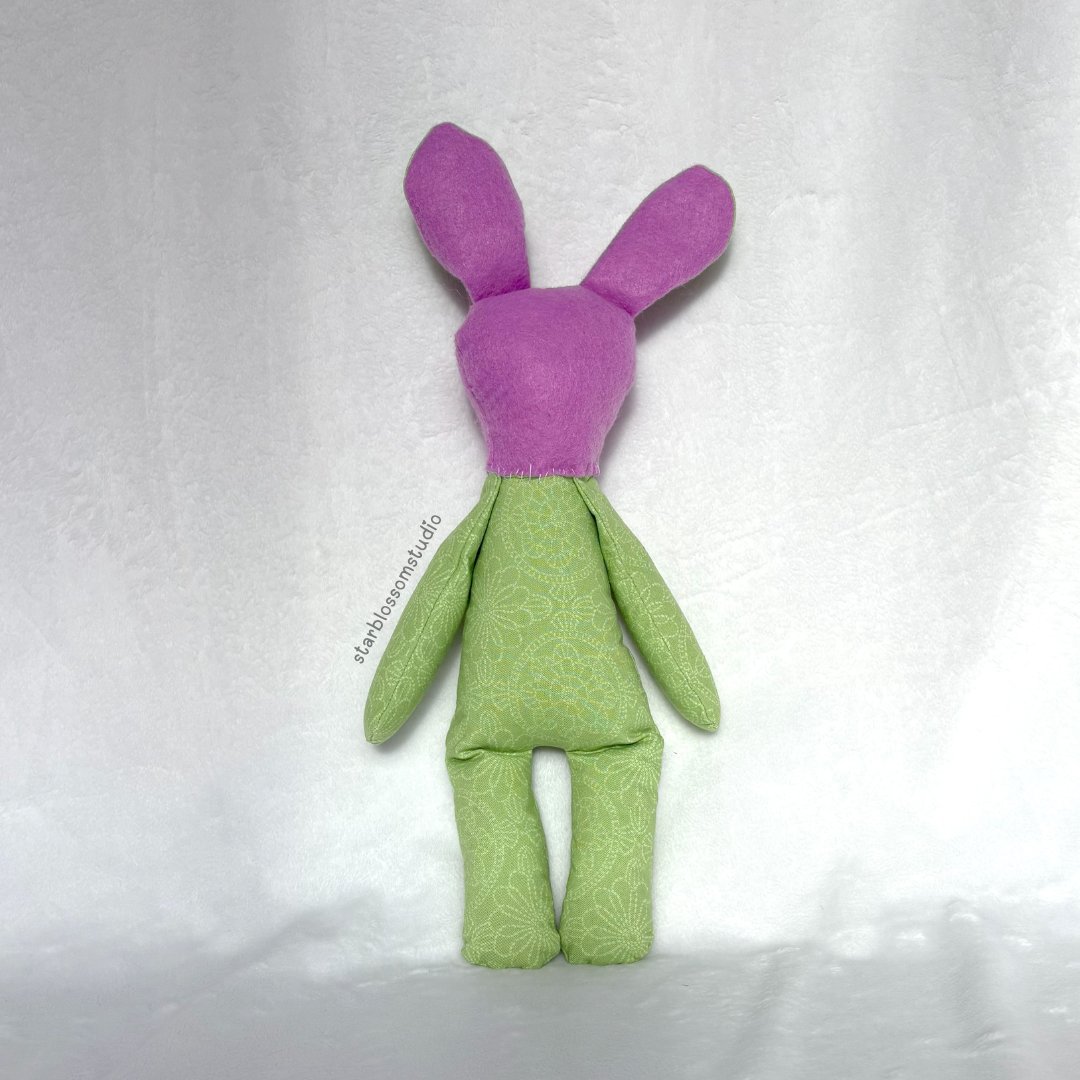 Betsy is a handcrafted rabbit plush. She is safe for all ages, as her eyes are safety eyes secured properly. Adult supervision is recommended when young children are playing with Betsy.